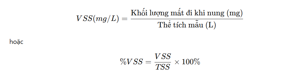 Chỉ tiêu VSS được xác định bằng phương pháp trọng lượng thông qua việc sấy khô và nung phần chất rắn lơ lửng thu được từ mẫu nước. Quy trình thực hiện cơ bản như sau: